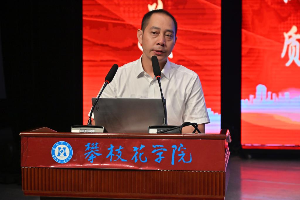 最后,蒋志强发表讲话。他首先对2025级新生的到来表示热烈欢迎,随后从学院发展历程、学科建设成果、人才培养目标等方面进行了介绍,寄语新生们要树立远大理想、锤炼过硬本领、涵养家国情怀,在钒钛学院的沃土上成长为堪当时代重任的高素质人才,为钒钛行业乃至国家发展贡献青春力量。