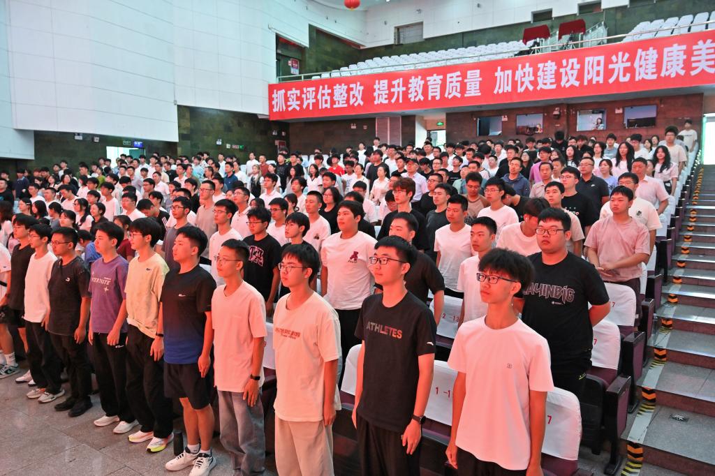 典礼在庄严的国歌声中拉开帷幕,全体师生肃穆站立,齐声高唱国歌。
