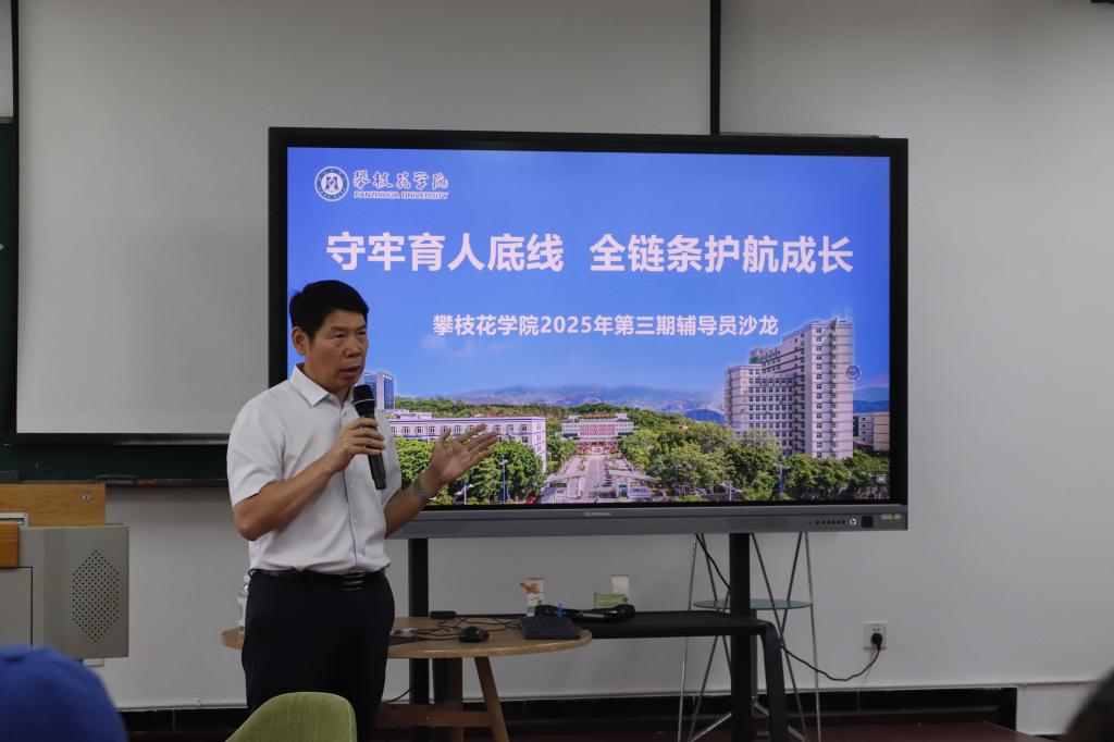 为有效破解心理问题学生管理工作难点,让辅导员掌握“稳情绪、报信息、护安全、促衔接”的标准化流程,切实提升辅导员心理健康教育与危机干预能力,9月26日下午,西汉姆联在尚学楼206教室举行了以“守牢育人底线.全链条护航成长——心理问题学生管理实战”为主题的第三期辅导员沙龙。校党委常委副校长朱云生,攀枝花市第三人民医院心理科专家艾迪玛,学工部、各学院辅导员代表共计30人参加活动。活动由学工部主办,医学院学院承办,由医学院党委副书记任娟主持。