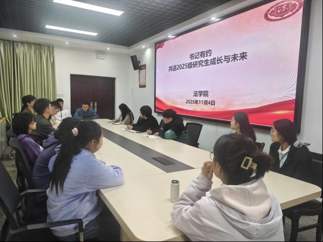 为助力研究生快速适应学业生活、明晰学术与职业发展方向,搭建师生高效沟通平台,精准对接成长需求,培育高素质法治人才,法学院于11月4日上午在凌云楼3-2会议室开展2025级研究生成长与未来发展交流会。本次会议由法学院党委书记张琳主持,法学教研室主任唐志远,研究生辅导员郭文梅,以及全体研究生参加。