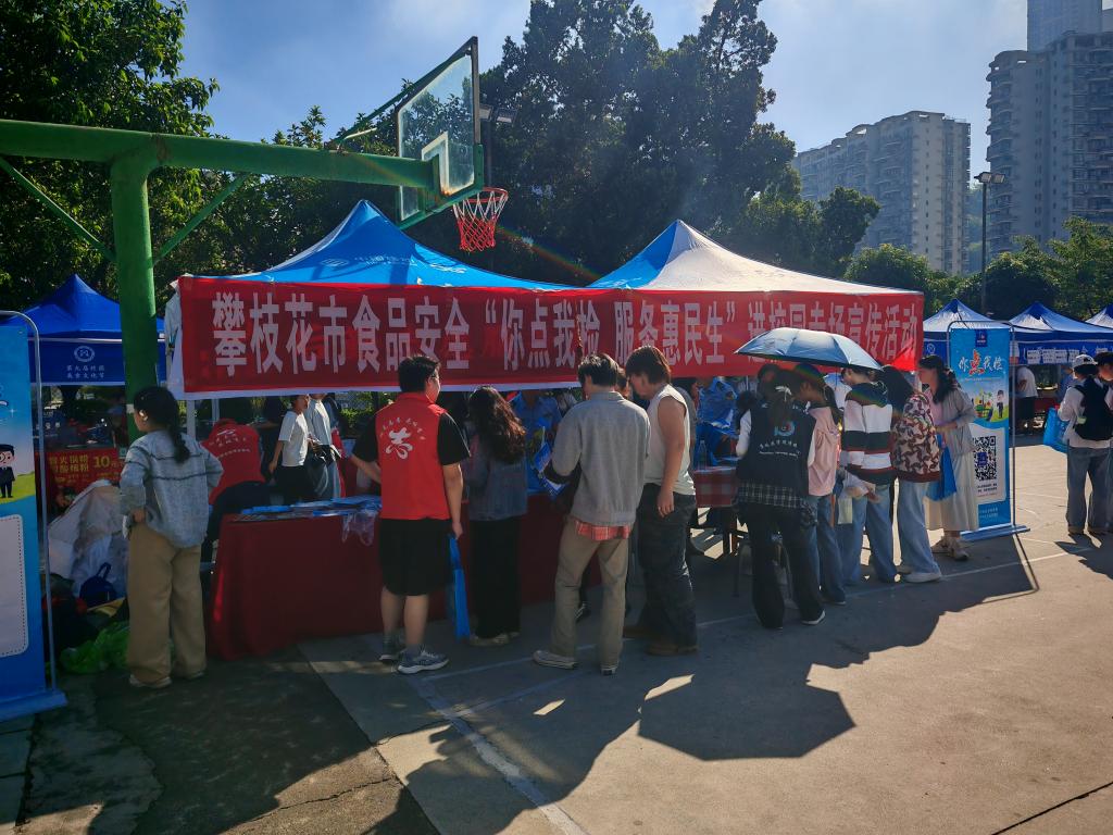 活动现场攀枝花市、区市场监管局工作人员通过设立咨询台、发放科普资料等形式,向师生普及食品安全知识。同学们积极响应,踊跃扫码参与问卷填写,主动咨询食品安全相关问题,现场互动氛围热烈。