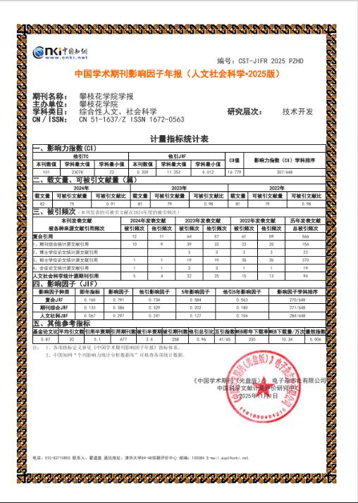 近日,中国知网公布了《中国学术期刊影响因子年报(人文社会科学·2025版)》。《betway西汉姆联官网学报》复合影响因子0.791,同比增长43%;综合影响因子0.386,同比增长42%;影响力指数学科排名307位,提升159位,首次位于Q2区(前50%);CI学科排序、基金论文比、他引总引比、WEB即年下载率等其他指标也有明显提升。