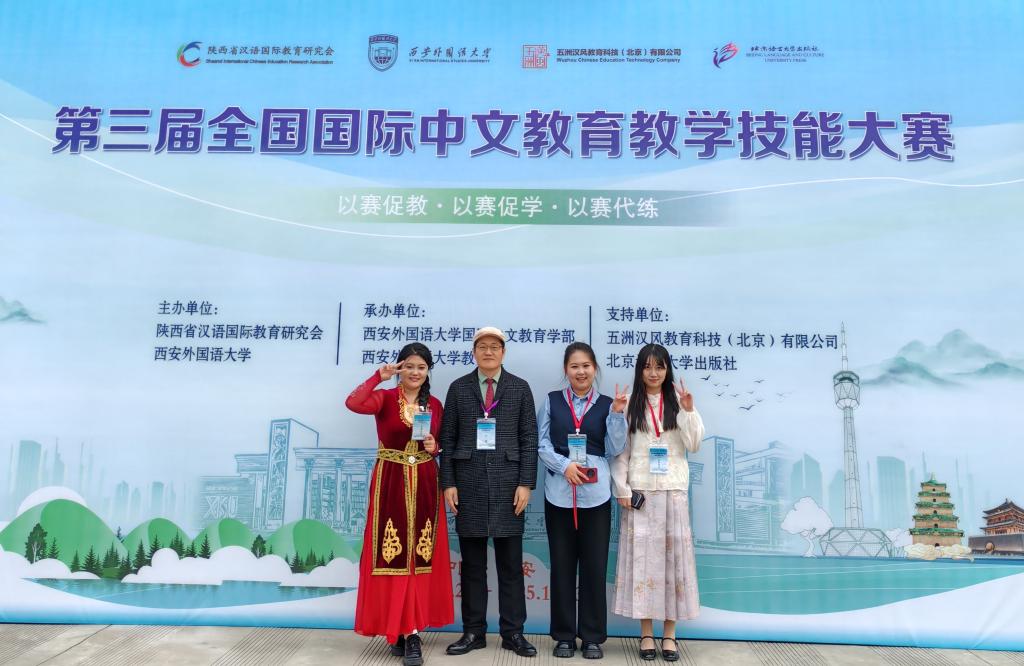 11月23日,第三届全国国际中文教育教学技能大赛在西安外国语大学落幕。文学院国际中文教育专业2025级研究生李丽娜、李柯萱和林心妍斩获大赛优秀奖,硕士点专业负责人解直委博士获评“优秀指导教师”,彰显了我校研究生专业人才培养的扎实成效。