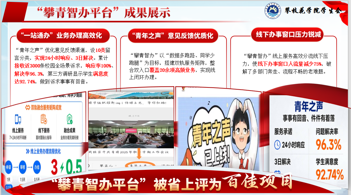本次活动汇聚全省200余所学校的381个优质服务项目同台竞技,经前期推选、现场答辩等多轮严格遴选,最终西汉姆联“攀青智办”项目在众多项目中脱颖而出。