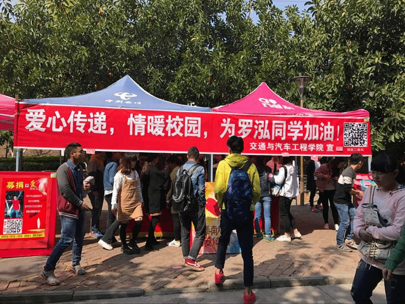 募捐倡议书。除了现场募捐活动外,罗泓同学的室友还在网络平台上为其建立了募捐渠道,全院师生纷纷积极转发捐款链接,以呼吁社会各界人士为罗泓同学伸出援助之手。