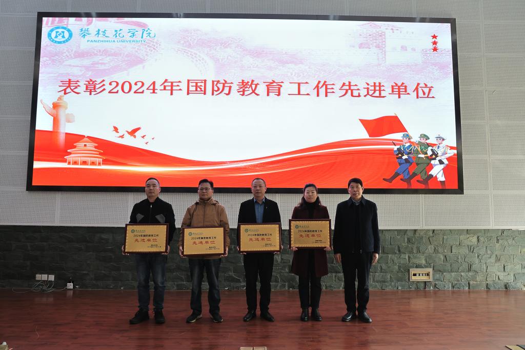 朱云生向智能制造学院等四个学院颁发2024年国防教育先进集体奖牌。