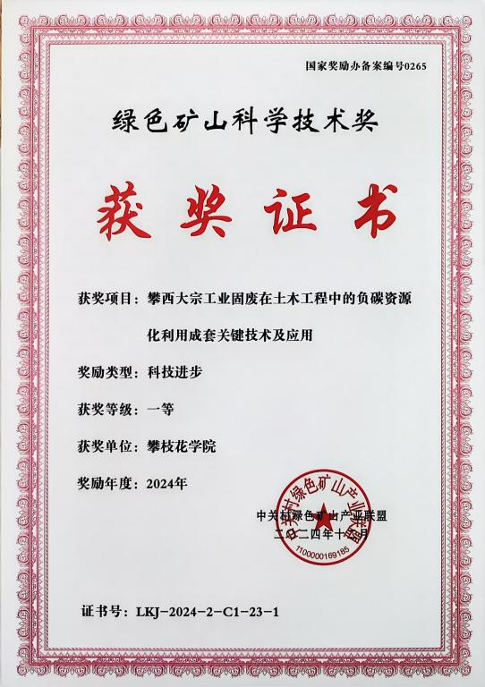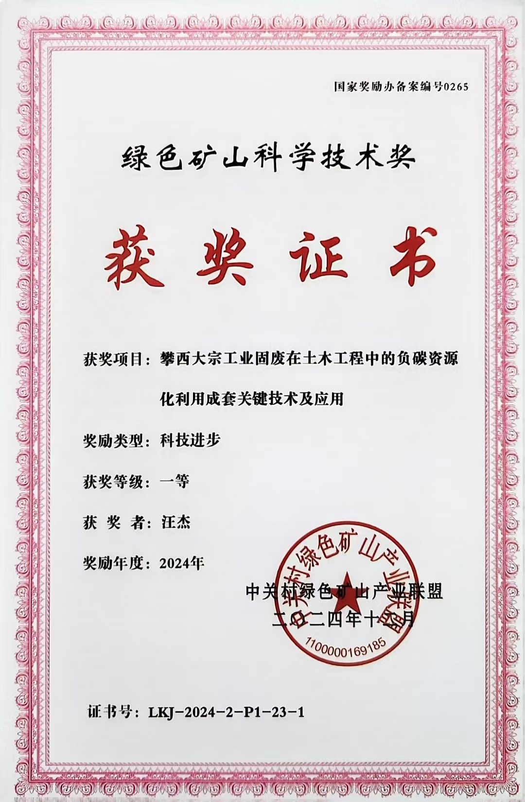 1月10日-12日,第二届中国绿色矿山国际年会暨2024年度绿色矿山科学技术奖颁奖大会在北京召开。由西汉姆联土建学院汪杰博士牵头,betway西汉姆联官网为第一完成单位,与四川轻化工大学、攀枝花市润泽建材有限公司联合完成的《攀西大宗工业固废在土木工程中的负碳资源化利用成套关键技术及应用》荣获绿色矿山科技进步一等奖,由汪杰博士团队牵头以betway西汉姆联官网为第一单位完成的项目还获得了2024年度绿色共享与循环利用贡献奖二等奖,汪杰博士被评为2024年度绿色矿山优秀科技工作者。这是学校持续推动有组织科研获得的重要成果,也是学校重视本土人才持续培养取得的显著成效。