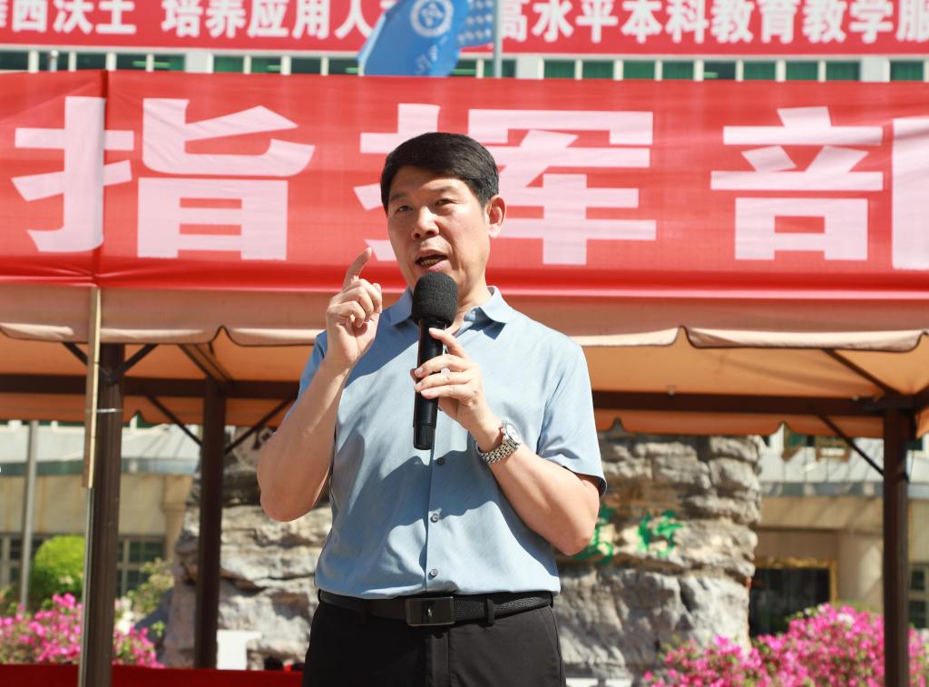 党委常委、副校长朱云生讲话。他指出,开展地震应急演练旨在提高师生的自救互救能力,此次地震应急综合演练组织科学合理、过程流畅有序。相关部门和学院要认真总结复盘本次演练,进一步加强防震避震知识学习和宣传,落细落小落实地震演练相关工作,要把每一次演练当成一次真正的防灾减灾实战,确保安全教育入脑入心。