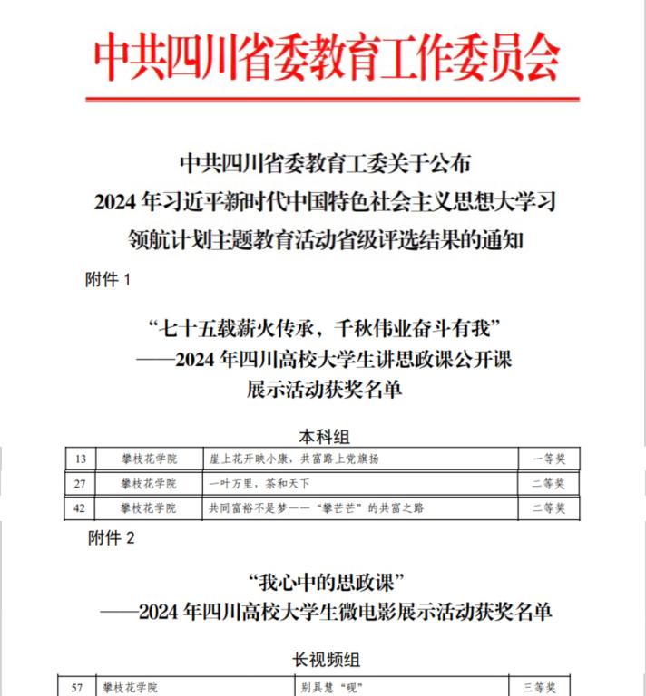 近日,由中共四川省委教育工委主办的“习近平新时代中国特色社会主义思想大学习领航计划主题教育活动”评选结果揭晓,西汉姆联马克思主义学院报送的作品《崖上花开映小康,共富路上党旗扬》在“七十五载薪火传承,千秋伟业奋斗有我”——2024年四川高校大学生讲思政课公开课展示活动中荣获一等奖,作品《一叶万里,茶和天下》《共同富裕不是梦——“攀芒芒”的共富之路》荣获二等奖,作品《别具慧“砚”》在“我心中的思政课”——2024年四川高校大学生微电影展示活动中荣获长视频组三等奖。