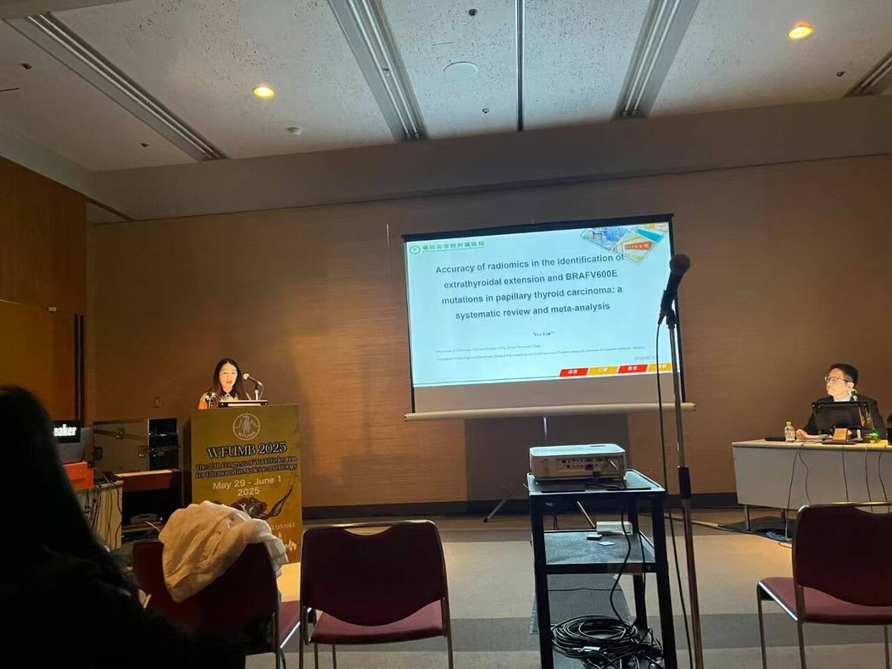 5月29日至6月1日,附属医院超声科副主任刘燕应邀赴日本京都参加第20届世界超声医学与生物学联合会大会,并在国际超声医学论坛上做学术汇报,其论文ACCURACY OF RADIOMICS IN THE IDENTIFICATION OF EXTRATHYROIDAL EXTENSION AND BRAFV600EMUTATIONS IN PAPILLARY THYROID CARCINOMA被大会收录。