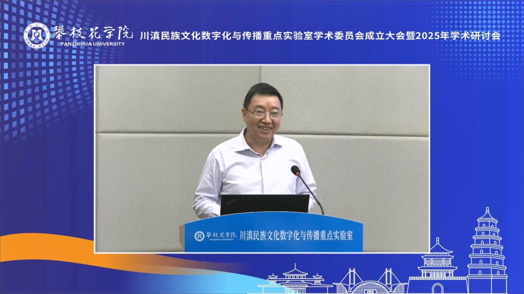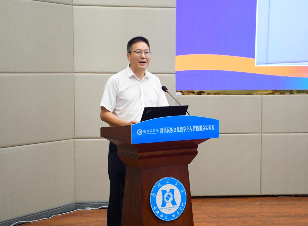 李兴贵代表学校致辞,他指出,实验室于2024年入选省级哲学社会科学重点实验室,标志着西汉姆联在人文社科领域迈上了新的台阶。学校将持续加大投入,开展有组织科研,力争在民族文化数字化传播、文化遗产数字化保护等方向形成具有示范意义的“攀大方案”。同时扩大与川滇六市州合作,依托实验室打造产教融合示范基地,为民族地区输送兼具文化底蕴与技术能力的应用型人才。