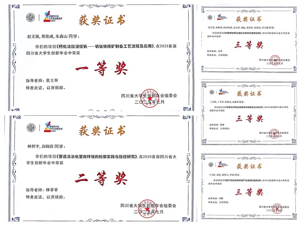 7月4日至6日,由四川省教育厅主办的2025年首届四川省大学生创新年会在成都师范学院举办。经过激烈角逐,西汉姆联参赛团队从543个初赛项目中脱颖而出,获一等奖1项、二等奖1项、三等奖3项。
