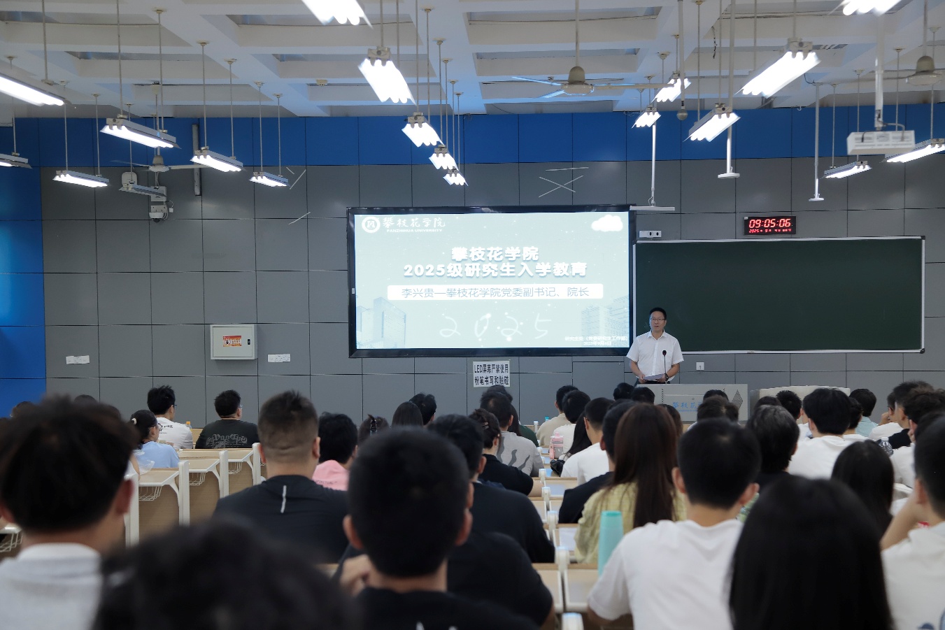 9月4日上午,学校举办2025级研究生新生入学第一课,李兴贵勉励同学们要标定“四个立”的坐标:立魂,把论文写在攀西大地;立学,在交叉处拔尖;立行,用自律赢得自由;立心,让阳光照进未来。希望同学们牢记“不创新,不罢休;不成才,不还乡”的誓言,在钒钛之都、阳光花城开启研途新征程。