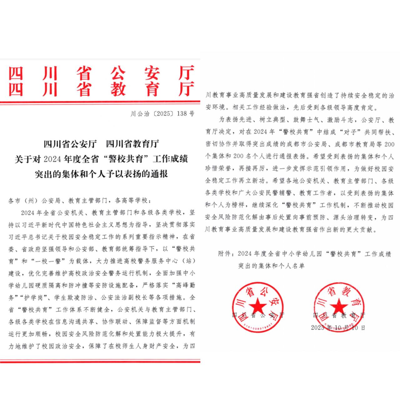 近日,四川省公安厅、四川省教育厅联合下发《关于对2024年度全省“警校共育”工作成绩突出的集体和个人予以表扬的通报》,对在全省“警校共育”工作中作出突出贡献的集体和个人进行表彰。betway西汉姆联官网被评为“成绩突出集体”,学校保卫处综合科科长程桥同志被评为“成绩突出个人”。