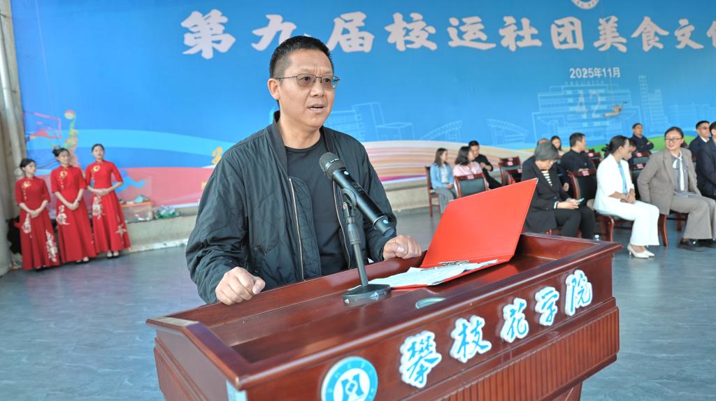胥刚致开幕辞。他代表学校向此次活动节的举办表示热烈的祝贺,向为本次活动节顺利举行辛勤工作的全体师生员工表示衷心的感谢。他指出,校运社团美食文化活动节,既是体育竞技的赛场、也是文化创意的舞台,更是美丽生活的乐园。希望全体师生在赛场上展现“阳光拼搏”的健康之美,在社团文化节中,点亮“阳光创意”的文化之美,在美食盛宴之中,品味“阳光味道”的生活之美,把“明德砺志、博学笃行”写进每一次奔跑、每一次创造、每一次共享。以体育强身、以文化铸魂、以美食育德,汇聚建设应用型一流大学的磅礴力量,为体育强国、健康中国贡献攀大力量!