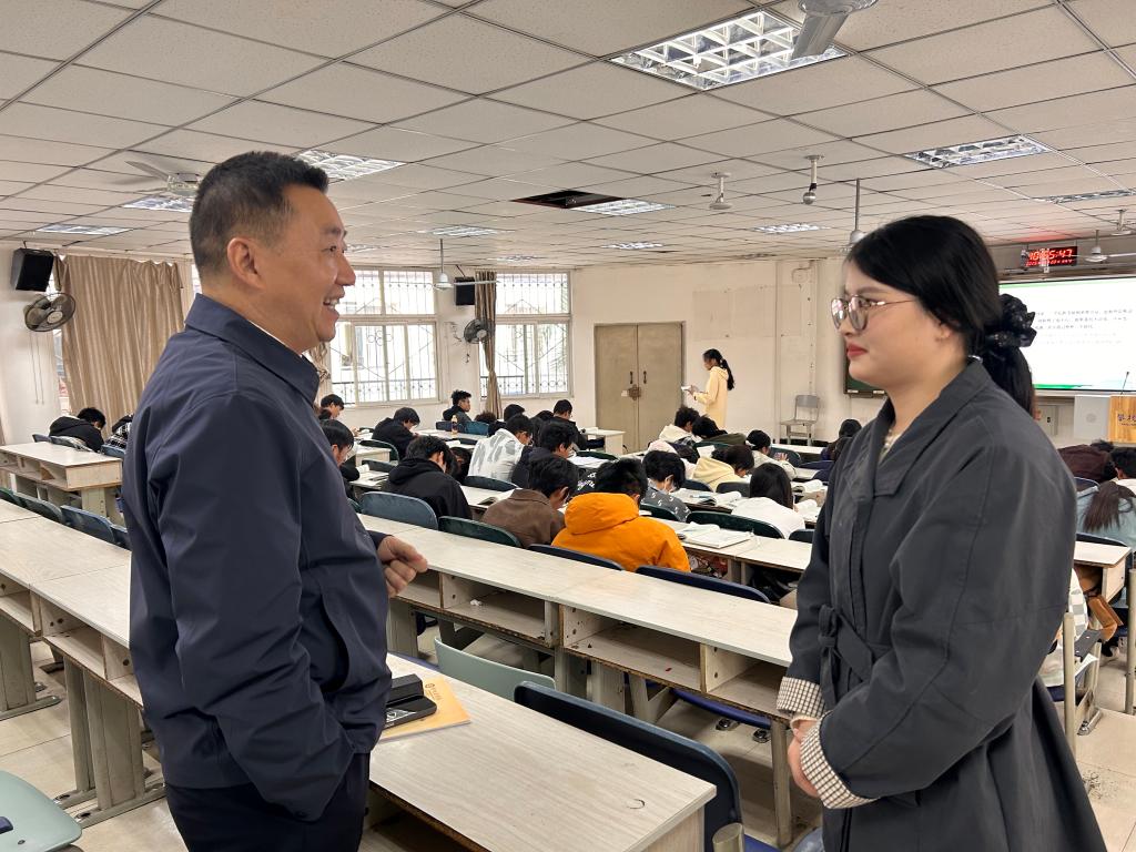 校领导深入教学一线听课评课,是我校贯彻落实《普通高等学校马克思主义学院建设标准(2023)》《教育部办公厅关于开展2025-2026学年高校思政课课堂教学提升行动的通知》要求的常态化举措,更是锻造立德树人关键课程的具体实践。学校党委始终将思政课建设摆在突出位置,将其作为培养担当民族复兴大任时代新人的根本性、战略性工程,持续强化政策支持与资源保障,推进思政课在内容创新、方法革新、载体焕新上提质增效,为培养让党放心、爱国奉献的栋梁之才筑牢思想根基、凝聚奋进力量。