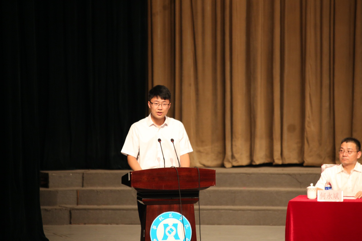 机械学院2015级工业设计学生唐浩代表全体学生感谢老师们的辛勤付出,表达了对学校全体教师的崇高敬意和衷心祝福。