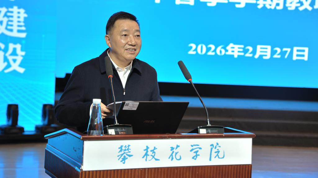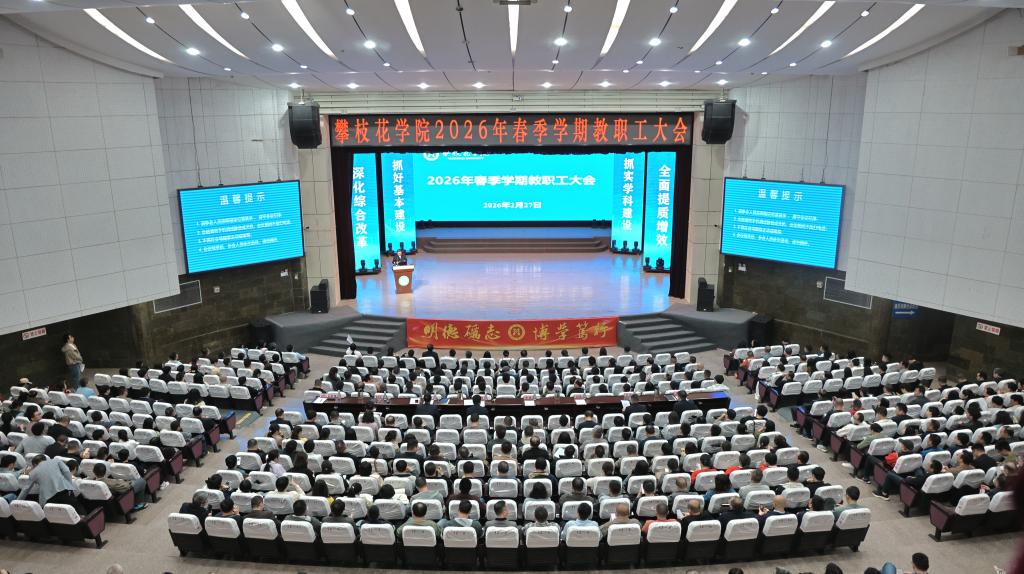 胥刚在主持讲话中指出,2025年全校师生紧扣“审核评估年、基本建设年、质量提升年、作风深化年”主线,高质量通过本科教育教学审核评估,成功获评“全国文明校园”,基建与数字化建设提速增效,学科建设、科研创新、人才培养、产教融合成果丰硕,全面从严治党向纵深推进,各项事业迈上新台阶。他强调,2026年是“十五五”规划开局之年,更是冲刺“升大”目标的关键之年,还是深化综合改革、推进学科升级的攻坚之年。全体攀大人要以“争”的意识、“攀”的劲头、“合”的力量,锚定发展目标,深化综合改革,推进学科升级,抓好基本建设,全面提质增效,确保“十五五”开好局起好步,奋力谱写应用型一流大学建设新篇章!