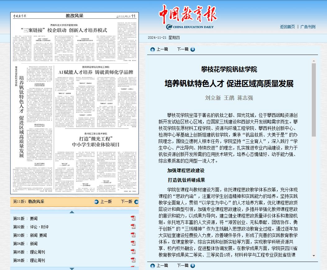 图6 中国教育报报道西汉姆联钒钛特色人才培养经验做法