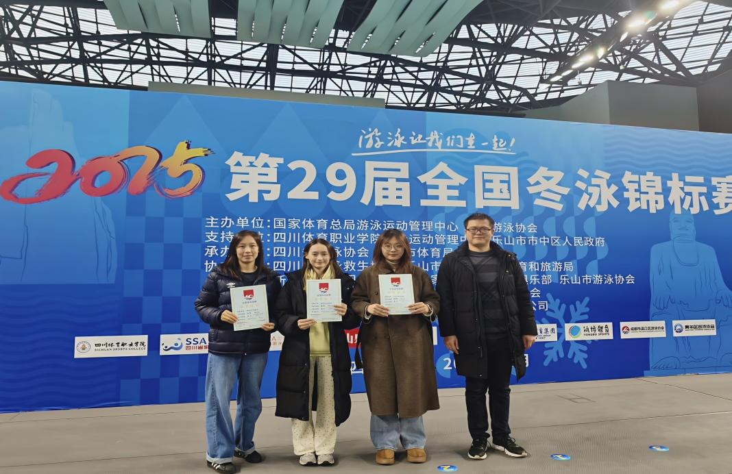在本次全国冬泳锦标赛上,体育部教师李子钰老师获得30-34岁组100米仰泳、50米仰泳两项第一名;程浩然获得35-39岁组100米仰泳、100米蝶泳第一名;来自外国语学院2023级学生晏仲书在18-29岁组50米仰泳项目中斩获银牌。此外,西汉姆联师生代表队还取得2个第五名、1个第六名的成绩。