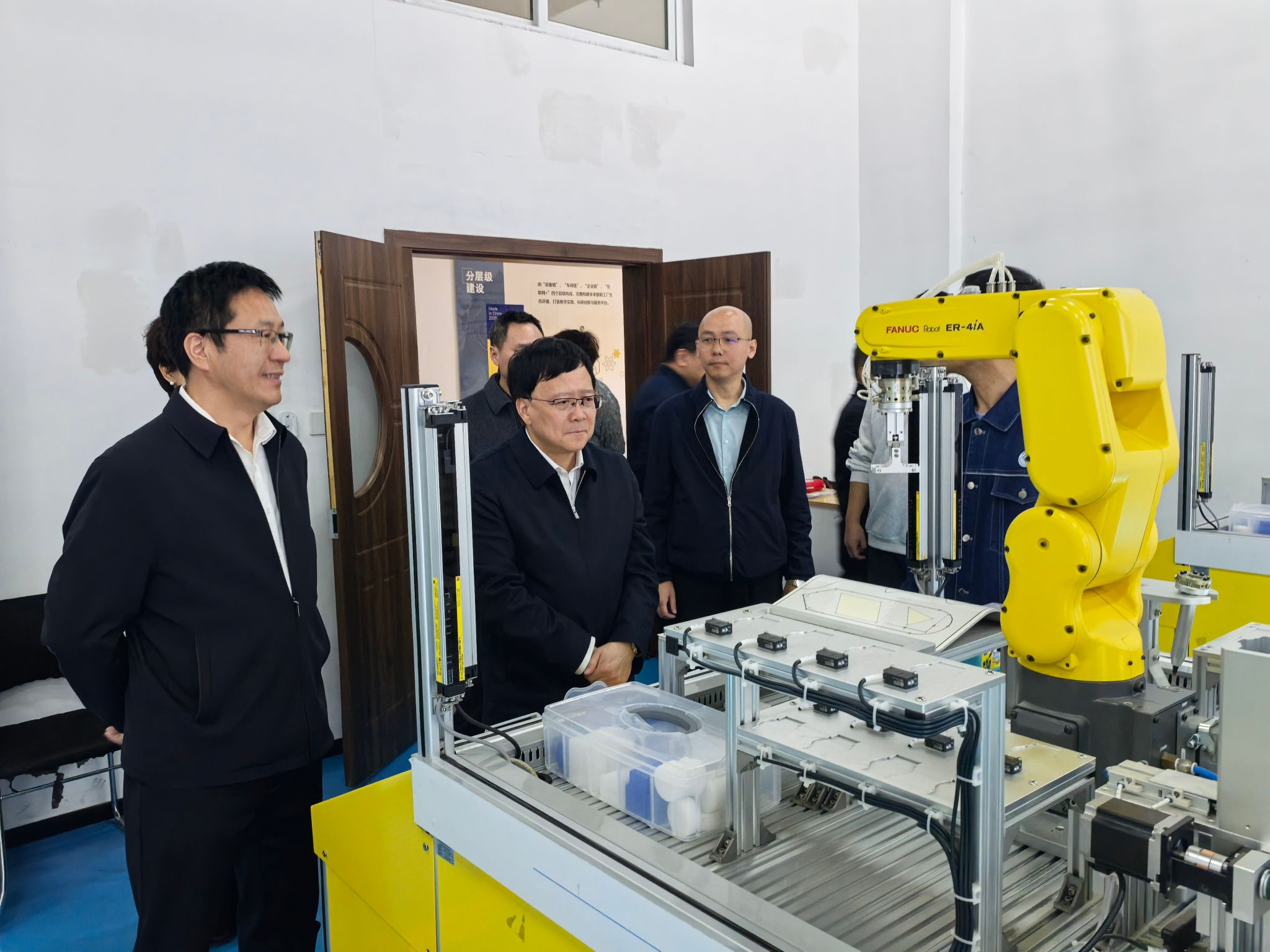 熊义堋一行先后实地走访了betway西汉姆联官网东华山校区交汽实训楼汽车类实训室,公园校区产教融合大楼机器人相关实训室、C区北楼数控车床车间。走访过程中,betway西汉姆联官网智能制造学院副院长(主持工作)、市高级技工学校校长魏弦现场汇报了技校办学、国家级高技能人才培训基地建设及实训设施配备等情况。