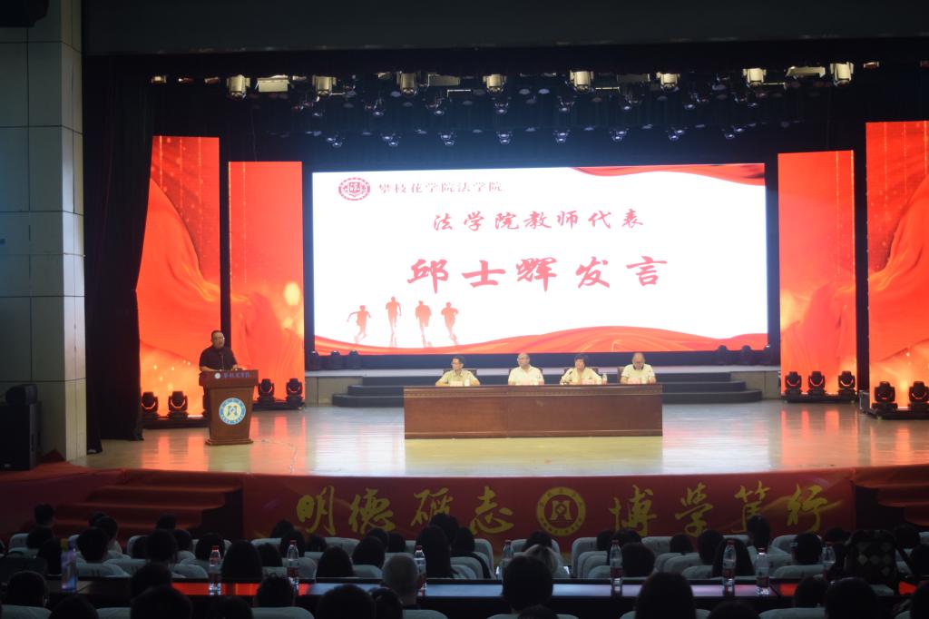 2024级新生家长代表罗智勇、法学院教师代表邱士辉相继发言,鼓励新生在大学四年中从兴趣入手提升学习能力,拓展学习深度和广度,怀揣对学科的热爱与滚烫的初心将国家的需要与自己的专业相结合,做一名时刻秉持公正善良之心的法律人。