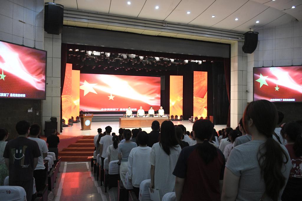 开学典礼在庄严的国歌声中拉开序幕。