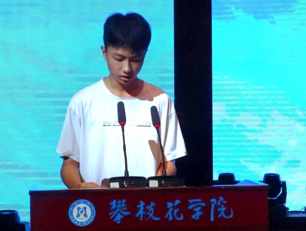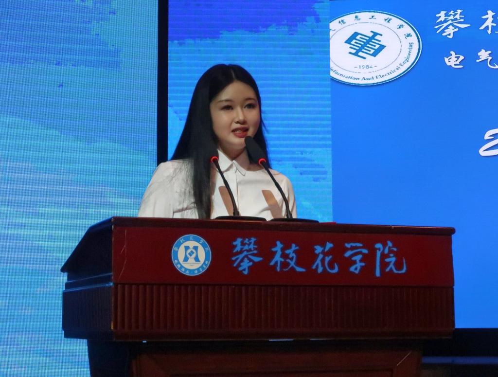 2023级电子信息1班李欣艺同学作为高年级学生代表发言。她激励新同学们要用智慧与汗水,为电气学院增添新的光彩,为奋力谱写自律阳光健康美丽攀大新篇章贡献出属于自己的青春力量!